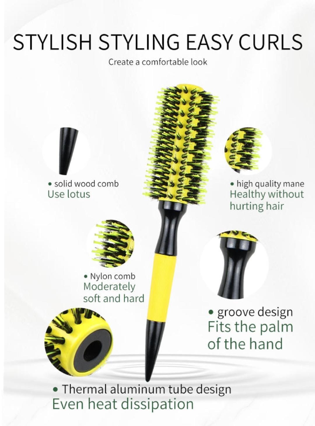 - Mixed natural and boar bristles for gentle yet effective styling